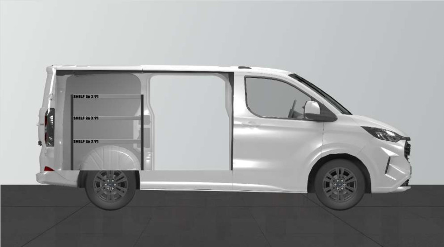 En mindre bilindretning til dem, der vil bevare bredden i deres Ford Custom & VW Transporter L1. Indretningen er 262,5 mm dyb og giver gode opbevaringsmuligheder til det mindre sortiment som f.eks. pakninger med skruer og mindre dele til ejendomsinspektører, elektrikere og VVS'ere. Indretningen passer til biler både med og uden sidedøre, og der er mulighed for at supplere indretningen med vores smarte modulbakker. For maksimering af opbevaringspladsen er det en populær løsning at supplere gavlen med vores smartboxes.
