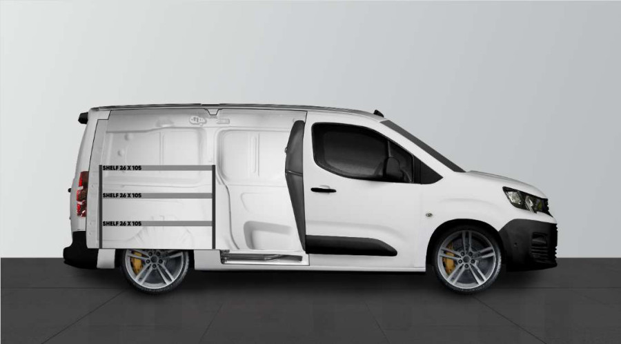En mindre bilindretning til dem, der vil bevare bredden i deres Citroen Berlingo, Opel Combo, Fiat Doblo Toyota ProAce City & Peugeot Partner L2. Indretningen er 262,5 mm dyb og giver gode opbevaringsmuligheder til det mindre sortiment som f.eks. pakninger med skruer og mindre dele til ejendomsinspektører, elektrikere og VVS'ere. Indretningen passer til biler både med og uden sidedøre, og der er mulighed for at supplere indretningen med vores smarte modulbakker. For maksimering af opbevaringspladsen er det en populær løsning at supplere gavlen med vores smartboxes.