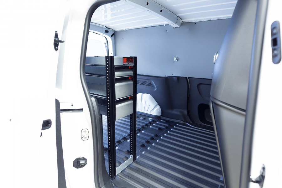 Vil du optimere din Maxus e-Deliver 3 L1 med en ekstra indretning? Det er en indretning, som gør det muligt at bevare bredden i bilen, da indretningen er 260 mm dyb. Indretningen har 3 stk. skuffer på kuglelejeskinner i varierende størrelser for at skabe forskellige opbevaringsmuligheder. Disse kan suppleres med indsatskit eller skuffeindsatser for optimal organisering. Hylderummet bag skuffeelementet suppleres ofte med modulbakker.