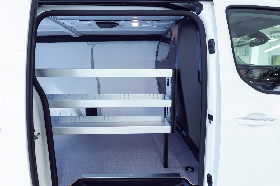 En bilindretning til dig, der vil bevare bredden i din Peugeot Expert, Citroën Jumpy, Opel Vivaro , Fiat Scudo & Toyota ProAce L2. Indretningen er kun 262,5 mm dyb og giver gode opbevaringsmuligheder for det mindre sortiment som f.eks. pakninger med skruer og mindre dele til ejendomsinspektører, elektrikere og VVS'ere. Det er muligt at supplere indretningen med vores smarte modulbakker. For maksimering af opbevaringspladsen er det en populær løsning at supplere gavlen med vores smartboxes.