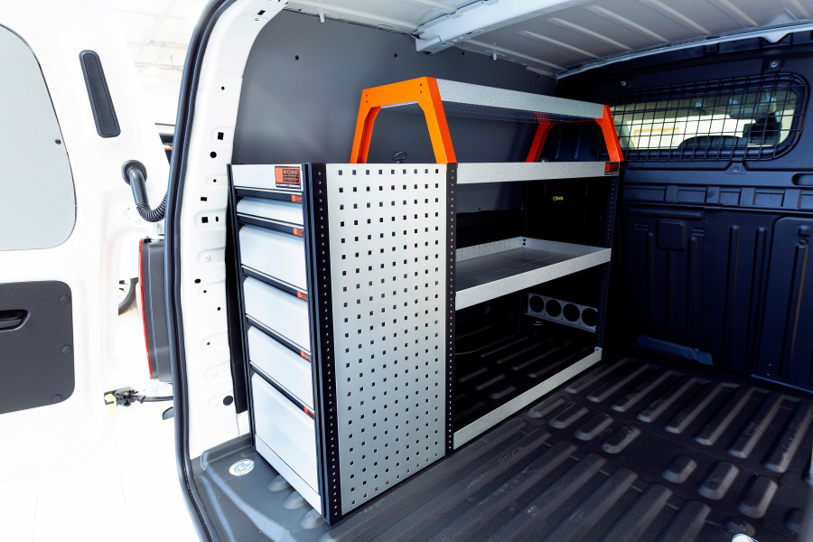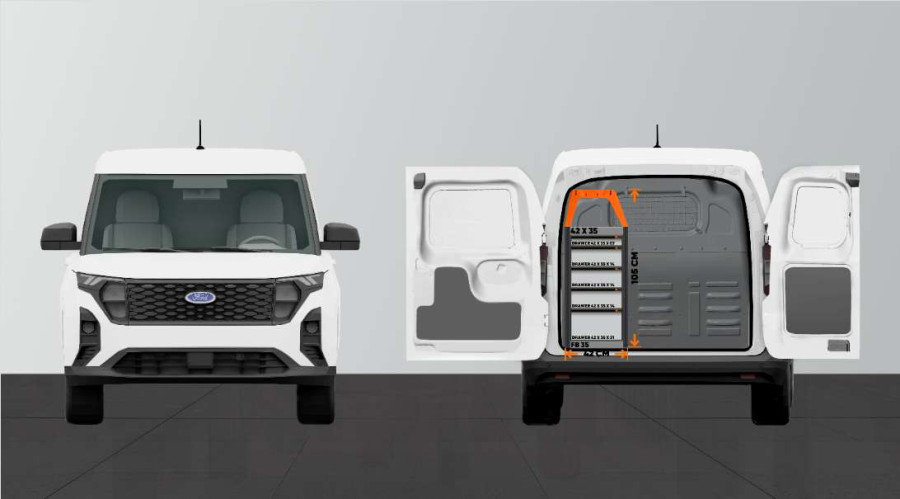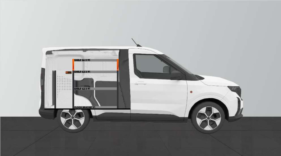 En indretning til dig, der ønsker mange lettilgængelige skuffer. Denne bilindretning til Ford Courier L1giver også gode muligheder for at opbevare dine værktøjskufferter, maskiner og de mindre dele på hylderne i indretningen. Hylderne kan suppleres med såvel hyldeinddelere som vores smarte modulbakker. Modulbakkerne fås i forskellige størrelser, så de passer til netop dine behov.