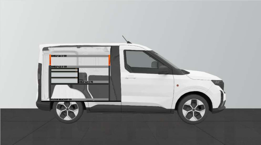 Dette er en af vores mest populære bilindretninger til Ford Courier L1. LS3-indretningen anvendes af blandt andet ejendomsinspektører som serviceteknikere, elektrikere, VVS'ere og tømrere. Indretningen giver gode opbevaringsmuligheder for både værktøjskufferter, maskiner, forbrugsmaterialer og dit mindste sortiment. Skufferne suppleres ofte med vores skuffeindsatser og inddelere, mens det er populært at supplere gavlen med vores smartboxes for at maksimere opbevaringspladsen.