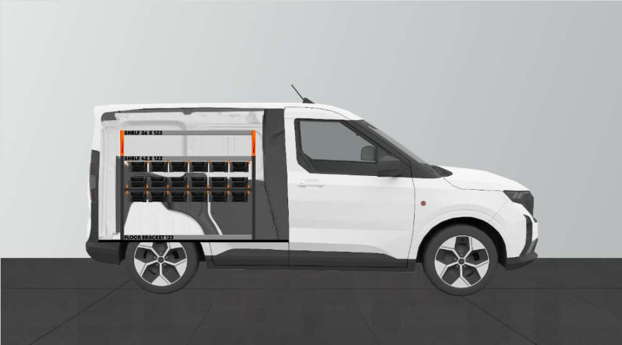RACK er en ny, brancheførende bilindretning til Ford Courier L1. Den passer perfekt til dig, der har brug for gode opbevaringsmuligheder til dit sortiment som f.eks. skruer, koblinger, bolte, bor med mere. Indretningen er maksimeret med i alt 18 af vores nye, inddelelige modulbakker. Modulbakkerne trækkes ud på fastmonterede skinner, hvilket giver let adgang. Fronten på modulbakkerne er udformet for optimal tilgængelighed og kan suppleres med transparent front og tværgående inddelere, som kan sættes efter hver 60 mm.