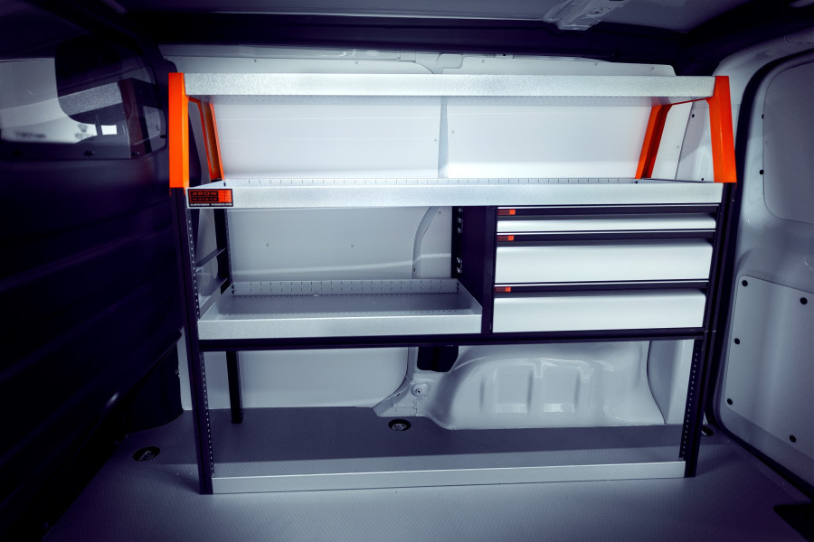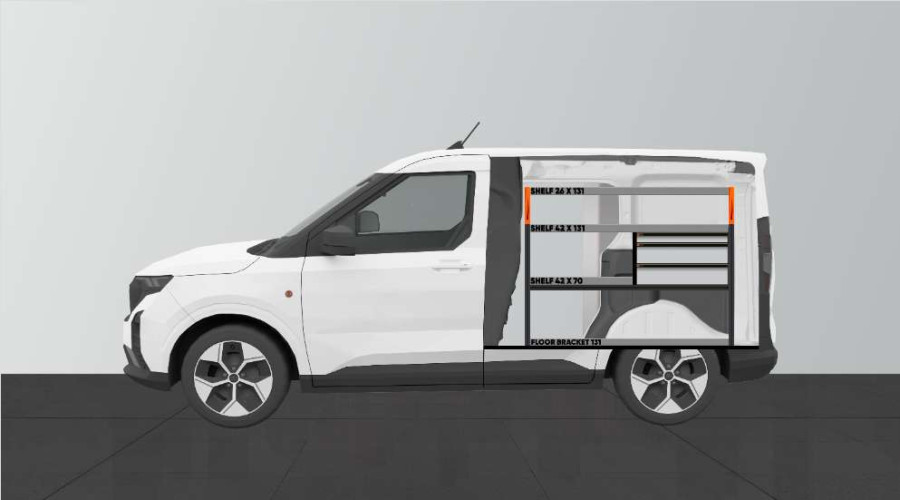 Dette er en af vores mest populære bilindretninger til Ford Courier L1. LS3-indretningen anvendes af blandt andet ejendomsinspektører som serviceteknikere, elektrikere, VVS'ere og tømrere. Indretningen giver gode opbevaringsmuligheder for både værktøjskufferter, maskiner, forbrugsmaterialer og dit mindste sortiment. Skufferne suppleres ofte med vores skuffeindsatser og inddelere, mens det er populært at supplere gavlen med vores smartboxes for at maksimere opbevaringspladsen.