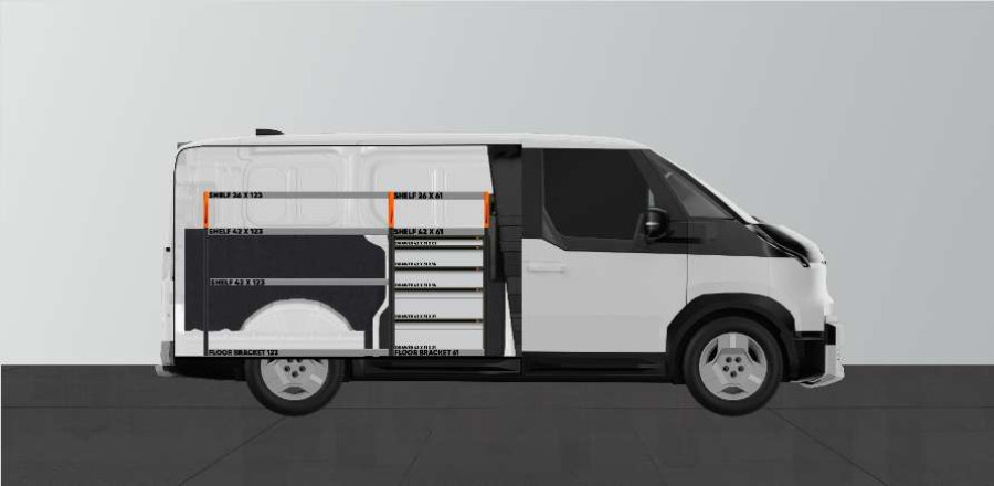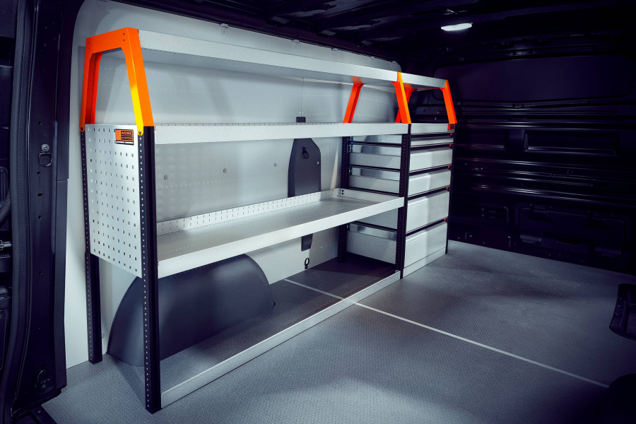 Dette er et af de mest populære systemer til KIA PV5 L2H1. Indretningen giver gode opbevaringsmuligheder for såvel værktøjskufferter og maskiner som de mindre dele. Du får en skuffeenhed med 5 skuffer i varierende størrelser. Skufferne på kuglelejeskinner suppleres ofte med vores nye skuffeindsatser og inddelere. Gavlen kan med fordel suppleres med vores smartboxes for at maksimere opbevaringspladsen.