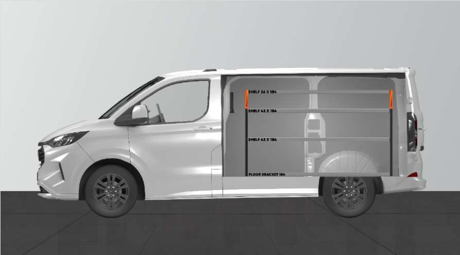 En bilindretning til din Ford Custom & VW Transporter L1, som giver gode opbevaringsmuligheder til både værktøjskufferter, maskiner og det mindre sortiment. Indretningens hylder med en dybde på 420 mm gør, at de fleste af markedets værktøjskufferter passer perfekt. Den øverste hylde på 262,5 mm suppleres ofte med vores modulbakker til opbevaring af mindre dele. Glem ikke at udnytte værktøjstavlen på gavlen.