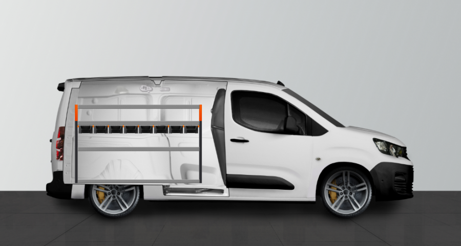En bilindretning til dig, som fra starten har besluttet at skabe den bedste orden i din Berlingo, Combo, Proace City & Partner L2H1. I denne indretning er der inkluderet 8 stk. af vores nye, smarte modulbakker. Du kan smidigt trække disse ud på vores modulbakke skinner. Disse er nemme at justere og kan flyttes langs hylderne. Selvfølgelig er der også gode lagerfaciliteter til dine værktøjskasser, maskiner og materialer, da de dybe hylder er 420mm.