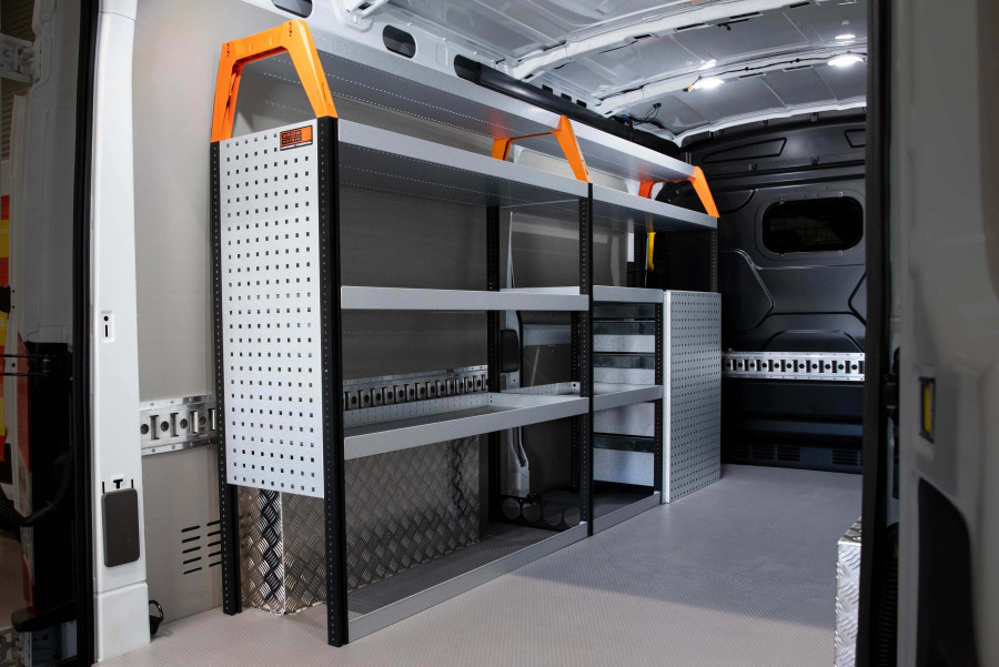 Med en blanding af skuffer og hylder er dette en meget populær bilindretning egnet til Ford Custom L1H1.