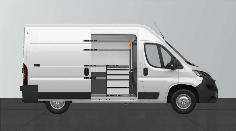 Dette er et af de mest populære systemer til Proace Max, Peugeot Boxer, Fiat Ducato, Citroen Jumper 2010- & Opel Movano 2021- L2, med sidedør i samme side som indretningen. Indretningen giver gode opbevaringsmuligheder for såvel værktøjskufferter og maskiner som de mindre dele. Du får en skuffeenhed med 5 stk. skuffer i varierende størrelser. Bag skufferne er der placeret en værktøjstavle for ekstra ophængningsmuligheder i bilen. Skufferne på kuglelejeskinner suppleres ofte med vores nye skuffeindsatser og rumdelere. Gavlen kan med fordel suppleres med vores smartboxes for at maksimere opbevaringspladsen.