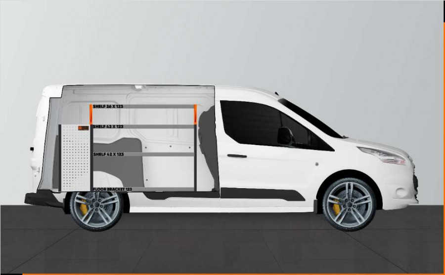 En indretning til dig, der ønsker mange lettilgængelige skuffer. Denne bilindretning til Ford Connect L2 giver også gode muligheder for at opbevare dine værktøjskufferter, maskiner og de mindre dele på hylderne i indretningen. Hylderne kan suppleres med såvel hyldeinddelere som vores smarte modulbakker. Modulbakkerne fås i forskellige størrelser, så de passer til netop dine behov.
