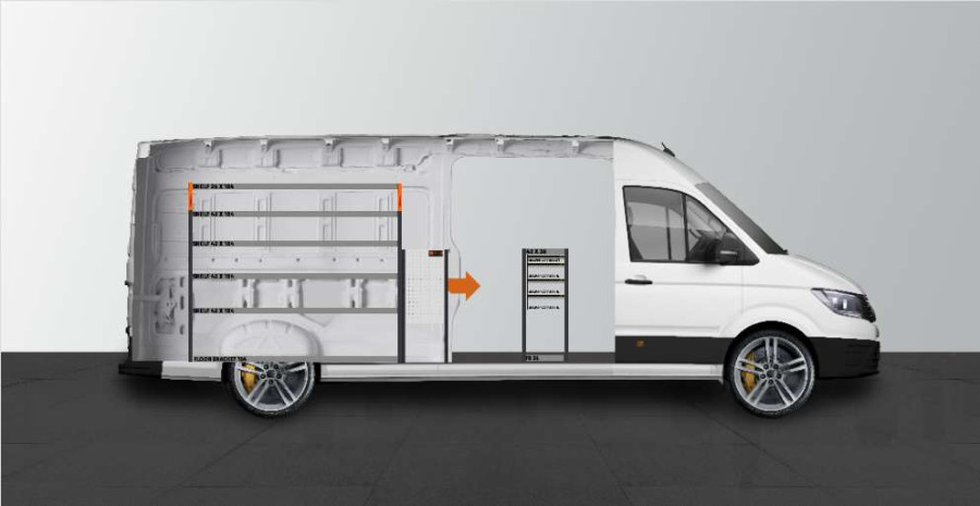 En af de mest populære indretninger til din MAN TGE & Volkswagen Crafter L4. Indretningen giver varierende opbevaringsmuligheder, da der er nem adgang til skufferne på kuglelejerne fra sidedøren, samtidig med at skufferne kan trækkes ud i kørselsretningen for at give et godt overblik. Disse kan suppleres med skuffeinddelere for optimal organisering. Vores dybe hylder giver også gode opbevaringsmuligheder til både værktøjskufferter og mindre maskiner.