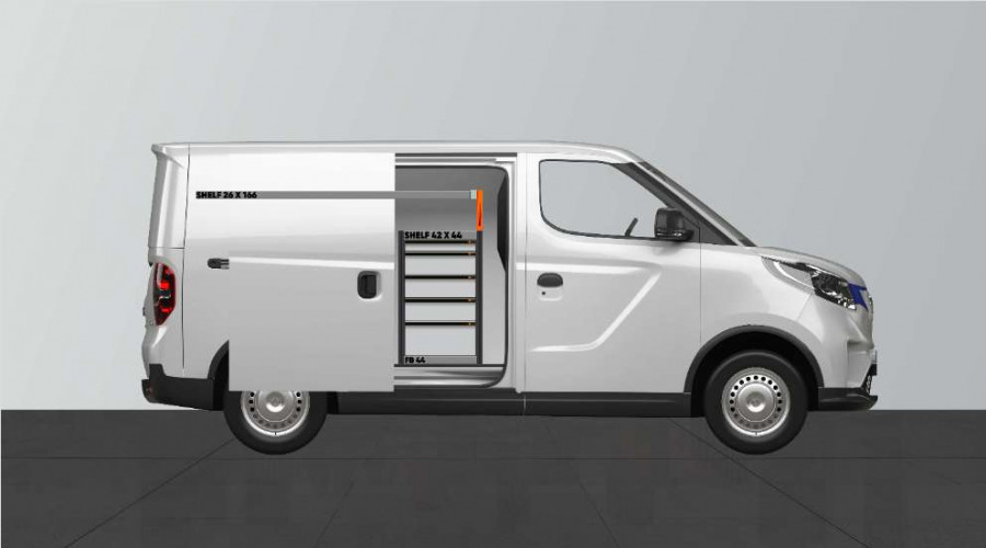 Dette er et af de mest populære systemer til Maxus e-Deliver 3 L1, med sidedør i samme side som indretningen. Indretningen giver gode opbevaringsmuligheder for såvel værktøjskufferter og maskiner som de mindre dele. Du får en skuffeenhed med 5 stk. skuffer i varierende størrelser. Bag skufferne er der placeret en værktøjstavle for ekstra ophængningsmuligheder i bilen. Skufferne på kuglelejeskinner suppleres ofte med vores nye skuffeindsatser og rumdelere. Gavlen kan med fordel suppleres med vores smartboxes for at maksimere opbevaringspladsen.