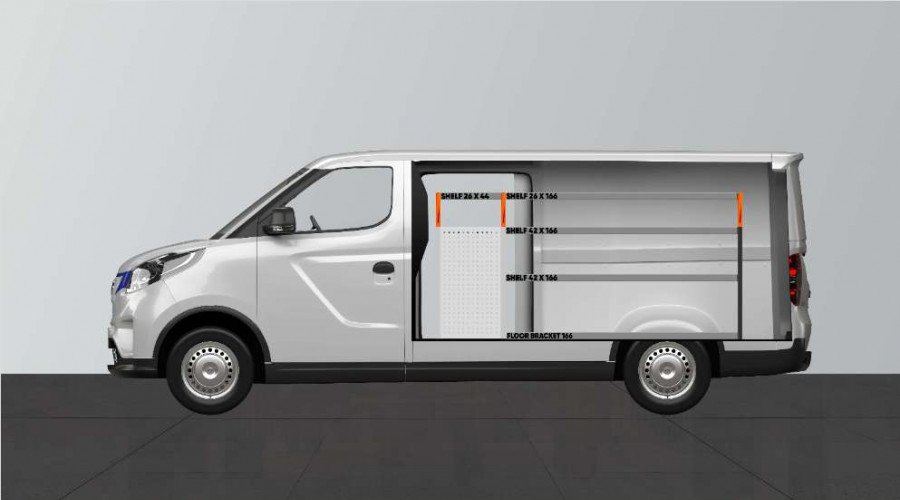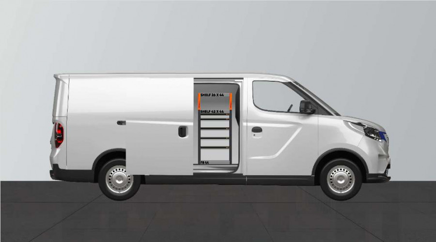 Dette er et af de mest populære systemer til Maxus e-Deliver 3 L2, med sidedør i samme side som indretningen. Indretningen giver gode opbevaringsmuligheder for såvel værktøjskufferter og maskiner som de mindre dele. Du får en skuffeenhed med 5 stk. skuffer i varierende størrelser. Bag skufferne er der placeret en værktøjstavle for ekstra ophængningsmuligheder i bilen. Skufferne på kuglelejeskinner suppleres ofte med vores nye skuffeindsatser og rumdelere. Gavlen kan med fordel suppleres med vores smartboxes for at maksimere opbevaringspladsen.