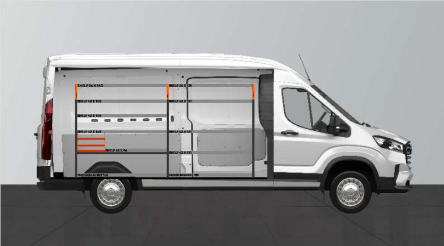 En populær indretning til dig, der har brug for gode opbevaringsmuligheder til såvel dit mindre sortiment som værktøjskufferter og maskiner. Denne serviceindretning indeholder 3 stk. sortimentsholdere, som er tilpasset til markedets mest populære sortimentskasse, Raaco Carrylight. Indretningen kan suppleres med sortimentkasser. Bilindretningen passer perfekt til din Maxus e-Deliver 9 L3.
