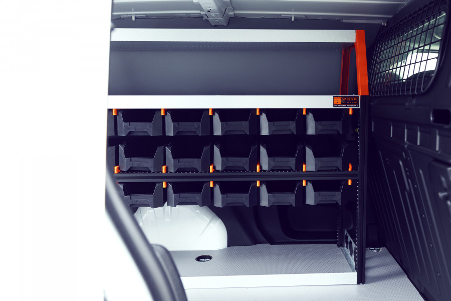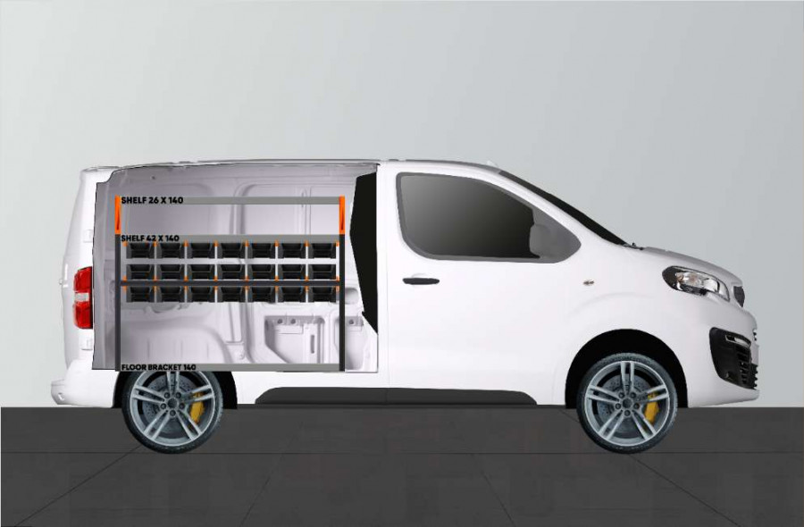RACK er en ny, brancheførende bilindretning til Peugeot Expert, Citroen Jumpy, Opel Vivaro , Fiat Scudo & Toyota ProAce L1. Den passer perfekt til dig, der har brug for gode opbevaringsmuligheder til dit sortiment som f.eks. skruer, koblinger, bolte, bor med mere. Indretningen er maksimeret med i alt 21 af vores nye, inddelelige modulbakker. Modulbakkerne trækkes ud på fastmonterede skinner, hvilket giver let adgang. Fronten på modulbakkerne er udformet for optimal tilgængelighed og kan suppleres med transparent front og tværgående inddelere, som kan sættes efter hver 60 mm.