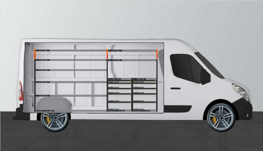 Er du på udkig efter en indretning med mange skuffer? Stiller du desuden store krav til indretningen? Så er dette det perfekte alternativ til dig og din Opel Movano, Renault Master & Nissan NV400 L3. Indretningen giver gode opbevaringsmuligheder for såvel værktøjskufferter og maskiner som de mindre dele. I alt indgår 10x skuffer på kuglelejeskinner. Du får også en skuffeenhed med skuffer af varierende størrelser. Skufferne på kuglelejeskinner er populære at supplere med vores skuffeindsatser og inddelere for optimal organisering.