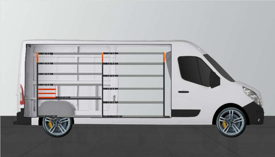 En populær indretning til dig, der har brug for gode opbevaringsmuligheder til såvel dit mindre sortiment som værktøjskufferter og maskiner. Denne serviceindretning indeholder 3 stk. sortimentsholdere, som er tilpasset til markedets mest populære sortimentskasse, Raaco Carrylight. Indretningen kan suppleres med sortimentkasser. Bilindretningen passer perfekt til din Opel Movano, Renault Master & Nissan NV400 L3.