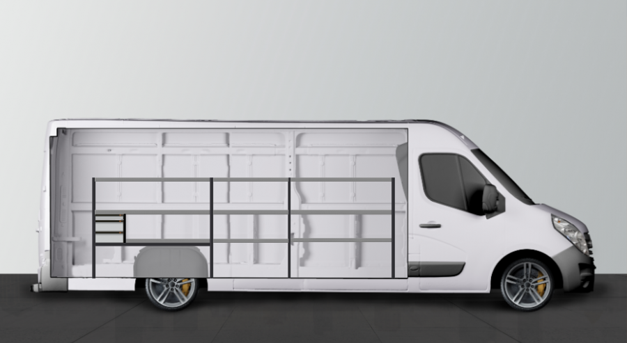 Et billigt alternativ til dem, der ønsker en kombination af kasser på kuglelejer, men også en masse opbevaringsmuligheder i form af hylder til din Movano, Master & NV400 L4H2. Indretningen er 420mm dyb, hvilket betyder at de fleste af markedsværktøjskasserne passer perfekt i hylderne. Kasserne er populære som supplement til vores nye sortimentskasser. Dette giver dig gode muligheder for at skabe og holde orden på dit mindre sortiment.