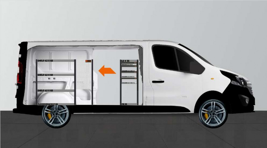 En af de mest populære indretninger til din Nissan NV300, Renault Trafic & Fiat Talento L2. Indretningen giver varierende opbevaringsmuligheder, da der er nem adgang til skufferne på kuglelejerne fra sidedøren, samtidig med at skufferne kan trækkes ud i kørselsretningen for at give et godt overblik. Disse kan suppleres med skuffeinddelere for optimal organisering. Vores dybe hylder giver også gode opbevaringsmuligheder til både værktøjskufferter og mindre maskiner.