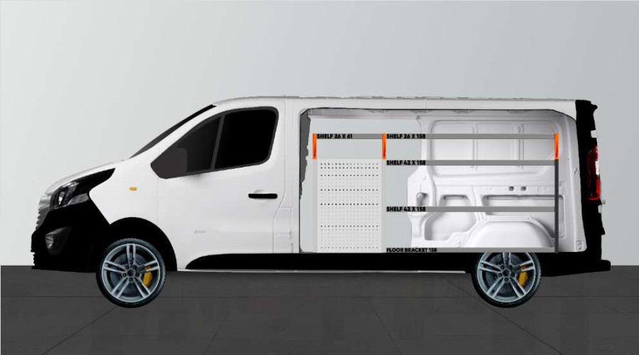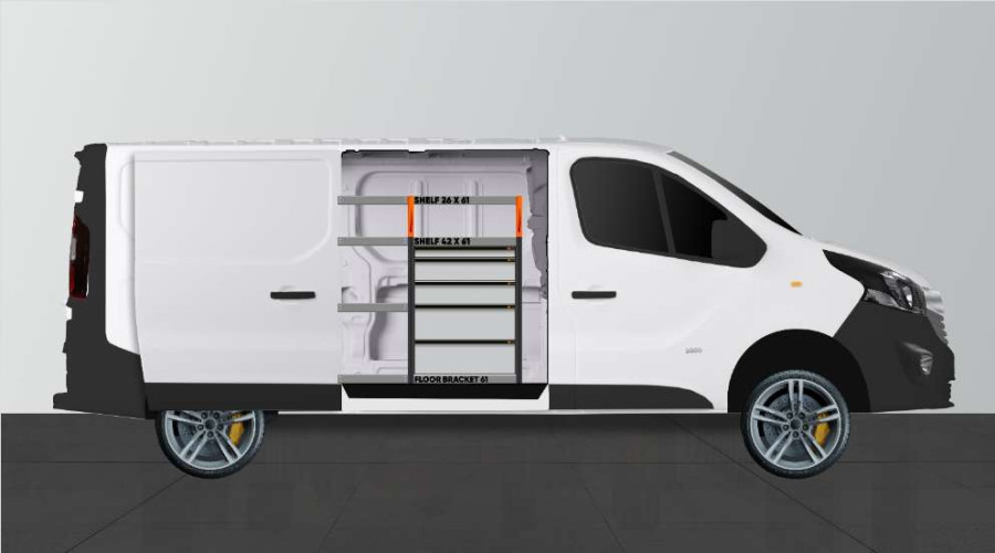 Med denne bilindretning får du meget opbevaring i både hylder og skuffer, der passer til Talento, NV300 & Trafic L2.