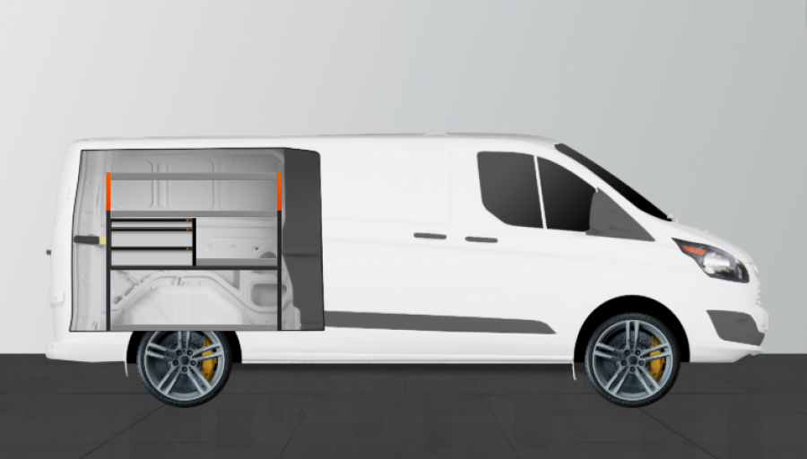 Dette er en af vores mest populære bilindretninger til VW Transporter L2H1 Dobbelt kabine. Du får gode opbevaringsmuligheder for både dine værktøjskasser, maskiner, forbrugsmaterialer og dit absolut mindste sortiment. Dette er den bedste pris på markedet. Kasserne er populære som supplement til vores nye sortimentskasser. At supplere gavlen med vores nye Smartbox er også ofte en populær mulighed for at maksimere lagerplads. Den fordelte belastning i skufferne på kuglelejer er 35 kg / stk. De indvendige dimensioner af skufferne er (mm) B-579, D-387, H-60 og H-130.