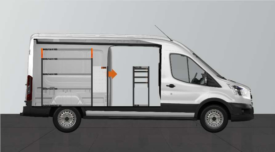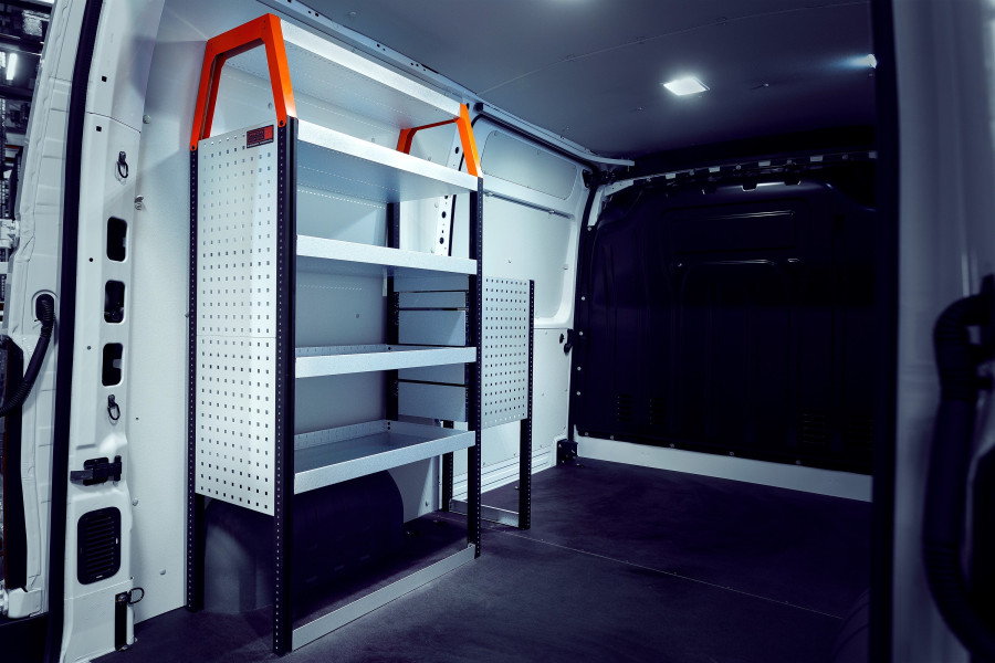 En af de mest populære indretninger til din Ford Transit L3H2. Indretningen giver varierende opbevaringsmuligheder, da der er nem adgang til skufferne på kuglelejerne fra sidedøren, samtidig med at skufferne kan trækkes ud i kørselsretningen for at give et godt overblik. Disse kan suppleres med skuffeinddelere for optimal organisering. Vores dybe hylder giver også gode opbevaringsmuligheder til både værktøjskufferter og mindre maskiner.