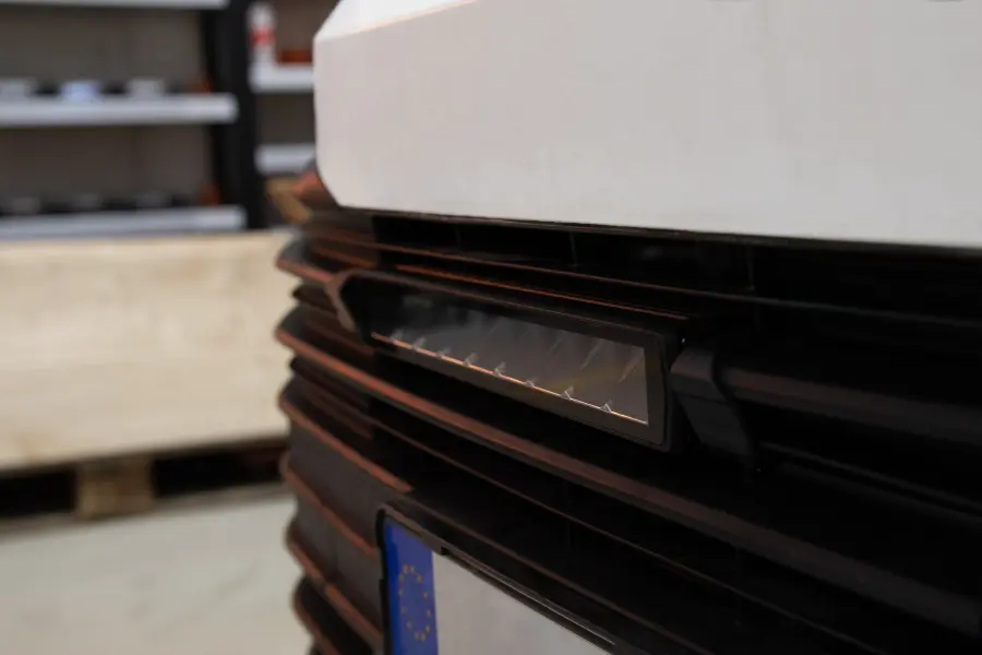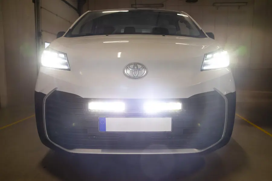 Oplys mørket i din Toyota ProAce med EXPLOSION SLIM 280 mm LED-rampe sammen med en modelspecifik beslag til indfældet montering i kofangeren for et diskret og stilrent resultat.