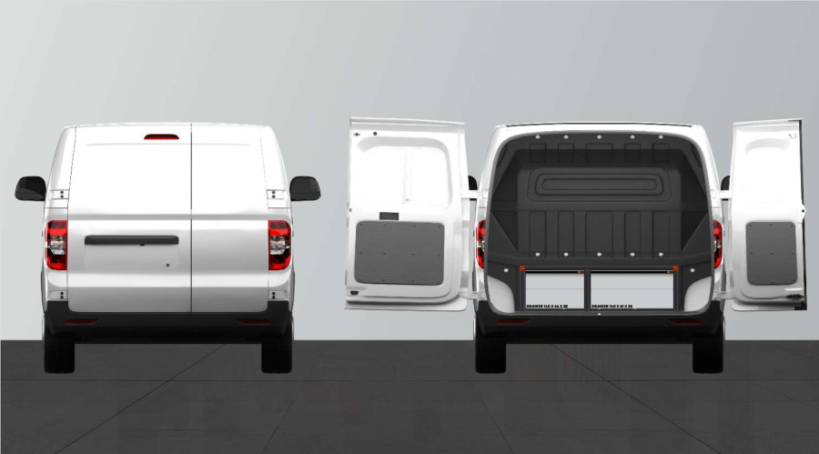 Lastbredden i skufferne bagud er 570 mm og 395 mm, i sidedøren er lastbredden 570 mm.
