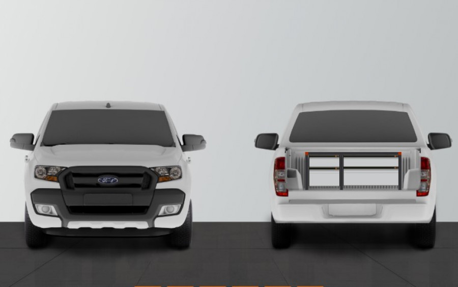 Forhøjet bund med udtrækkelige skuffer, der passer til Ford Ranger dobbelt førerhus 2020-2023
